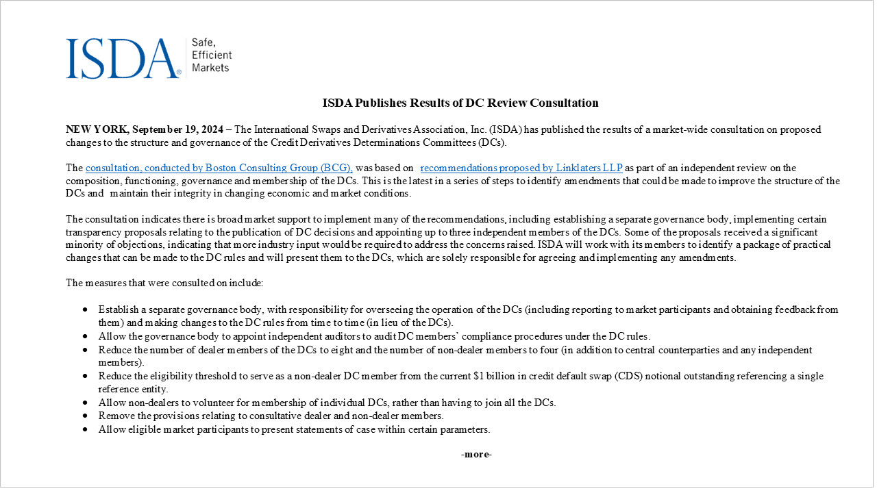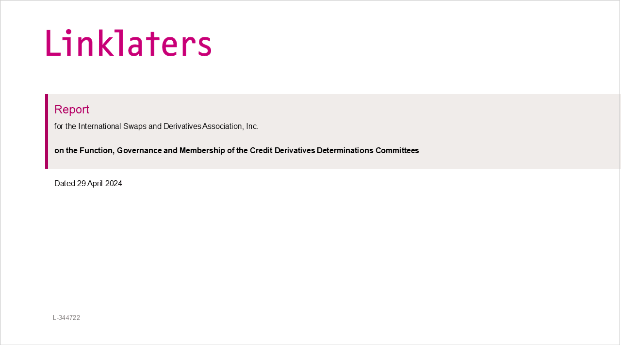 Linklaters Report for ISDA on the Function, Governance and Membership of the Credit Derivatives Determinations Committees
